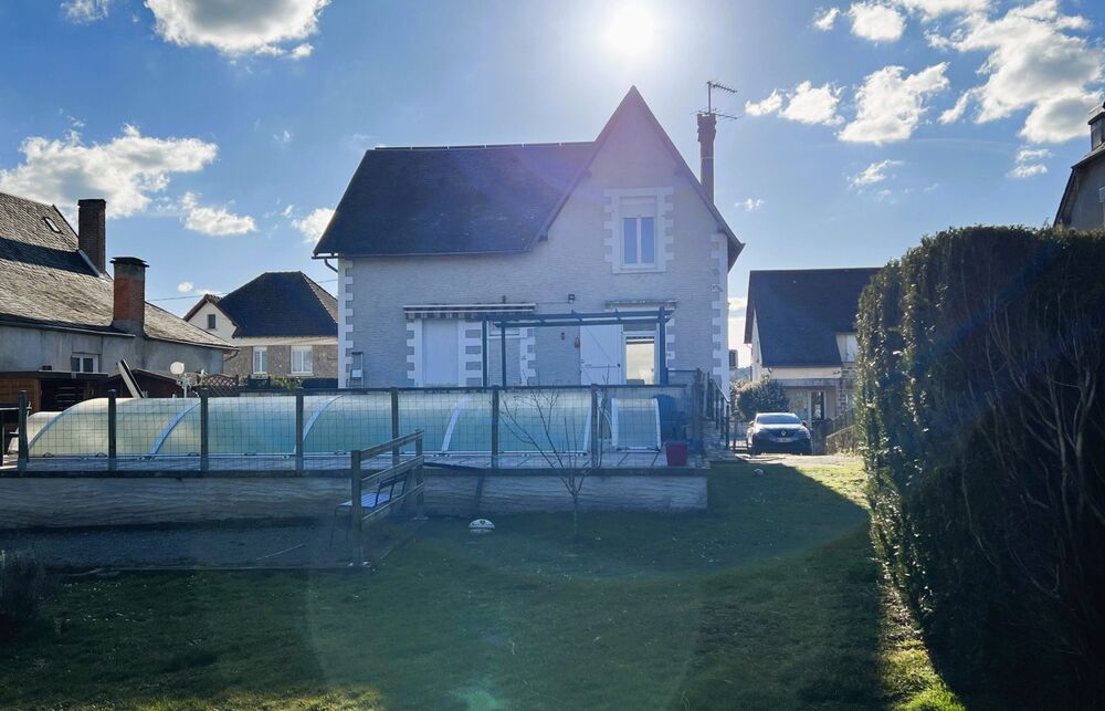 Située dans un bourg à 10 minutes de Tulle et 3 minutes de l'autoroute A89, cette maison est composée au RDC d'une salle à manger, d'un séjour, d'une cuisine équipée, d'un bureau pouvant faire office de chambre, d'une salle d'eau avec WC. A l'étage, vous disposerez de 4 grandes chambres ainsi que d'une salle de bain.Ce bien est doté de nombreux équipements, intérieurs comme extérieurs : dans la maison, climatisation réversible dans les pièces de vie comme dans les chambres, un poêle à bois, un système d'alarme déjà en place. L'installation récente de panneaux photovoltaïques permet de valoriser économiquement ces différentes installations. Un sous-sol complet offre des solutions de parkings et de rangements.En extérieur, vous passerez d'agréables moments autour de la piscine sécurisée, d'une belle terrasse sans vis à vis et d'une parcelle de terrain de plus de 800m²Idéalement situé, proche de nombreux commerces, des services publics et de l'école, à 2 pas de nombreux étangs et de la nature, ce bien est à découvrir rapidement !